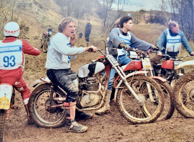 The heater was always flat out but did little good, with it still dark Dan would start the long days of the journeys to National trials already upsetting on coming motorists. He had this bad habit of never dipping his headlights, no-mater how many flashes he got. I would be concentrating on trying to keep down my toast and tea, as I always have suffered badly with travel sickness and the last thing we wanted to travel with my window wound down, but it did happen. Dan always wore smart trousers tucked into his wooly grey socks and a buttoned up shirt and usually wearing a Triumph neck tie but always a tie of some sort, I remember Ron Langston was always the same wearing a smart neck tie. Duffle coats with the toggles were the fashion for over coats… and under our Barbour or Belstaff jackets we always wore crisp small white towels around our necks. And the flat caps with the studded peak open. I must say Dan and I clicked first time out as a trials riding crew, and we seemed to know exactly where we needed to be positioned on the plot with out any words being said… and we both put 100% effort into our riding and with out any practice apart from the trials we competed in, and this was only six months in a year because of the road-racing season… The journeys home were always cold and sometimes very interesting if snow had fallen during the day Dan just used the road as another section and many times we had the back hanging out and drifting… No matter how we had performed during the trial there was never any words of dissatisfaction as we had alway tried our best and we did not blame each other for any mistakes as like I said we always tried our best. Arriving back at the farm Dan would pop in to say hello to the family and always decline mothers offer of any food, except for the fish and chips that Dan used to eat in the garage on a Wednesday evening I never did see him eat a lot…