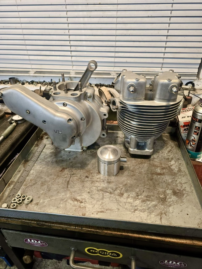 The Ariel VH 499cc long-stroke engine has completed its rebuild at JDC Motorcycle Engineering... and sporting its New MPD alloy barrel.
