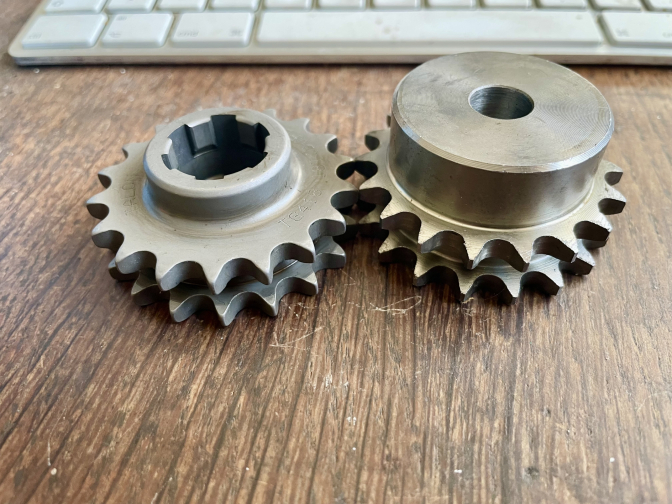 so I have had to start a plan "B", as you can see below. Have to get the drill press out for the alloy rear sprockets I think...