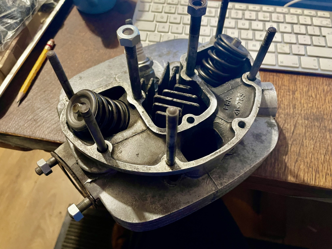 Well working on the BSA B44 engine again got a new inlet valve and top spring collars and ground in the valves ...so cylinder head is ready to refit, the reducing sleeve is now just a tapered sleeve through the carb spacer that should do the job with a smaller carb size.