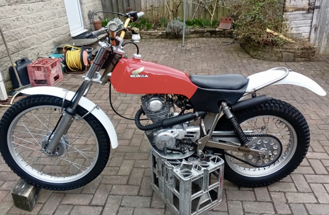 Colin Tipping used to buy crashed and discarded Honda's from the USA, and use most of the items apart from the frames, and these he built to create these machines, because he loved trials motor bikes,