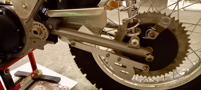 The front end is all standard. The rear end I had to make a chain guard, brake torque arm, chain guide, rubber and tensioner.