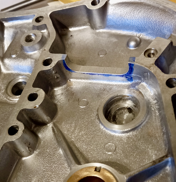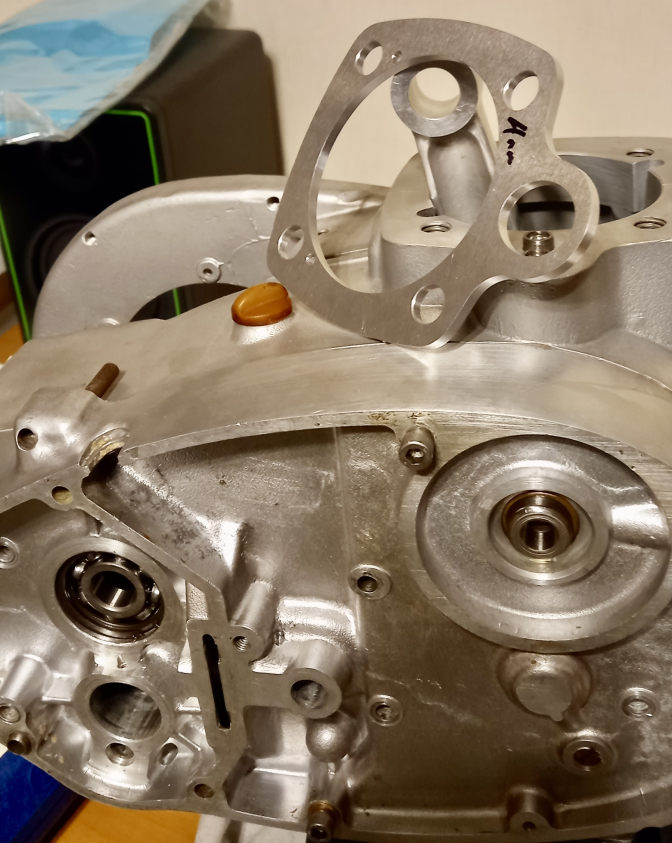 I drilled out the hole oversize then made a bush incorporating the spacer needed. I had a late crank and rod so I could start to build the engine. The barrel that I used had been modified. Someone had machined material from the base, I guess to raise the compression ratio.
