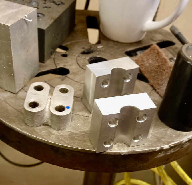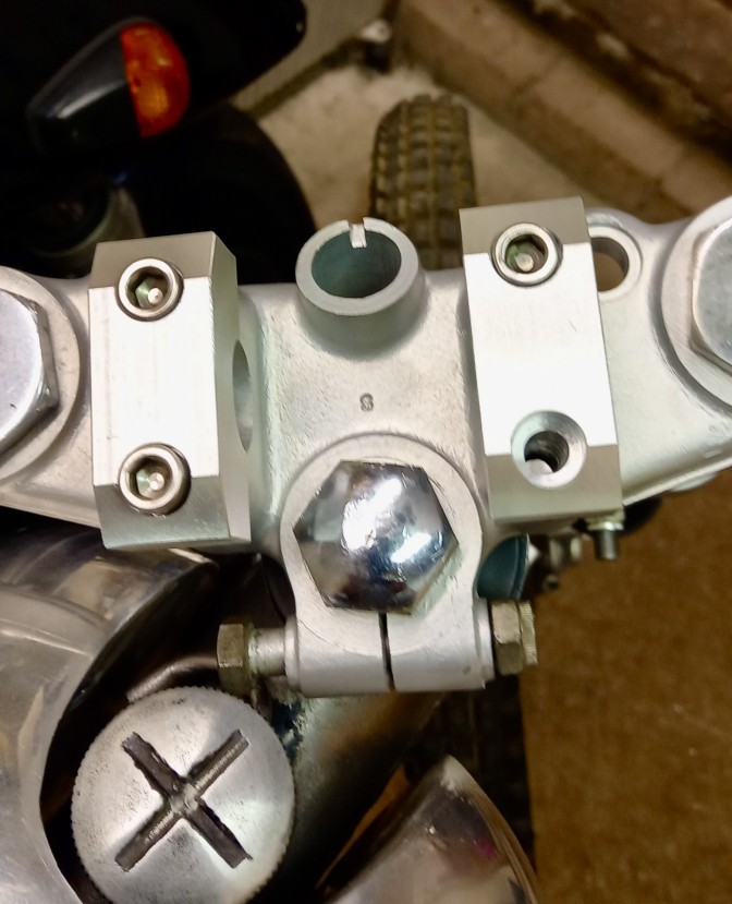 New handle bar clamps and spindle clamps were machined on my little Chinese lathe/mill. The machine is not what I'm used to but, if you're realistic you can do some decent work on them.