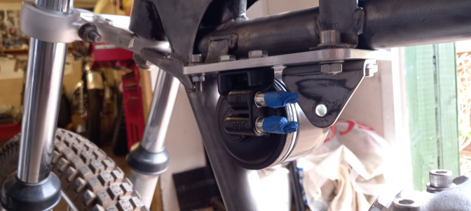 I move the cartridge oil filter from behind the engine to a more accessible position. Utilising the existing electric box mounting brackets. Some Dzus fasteners were added to allow the side panels to be fitted. That is about it for the frame. Ready for powder coating.