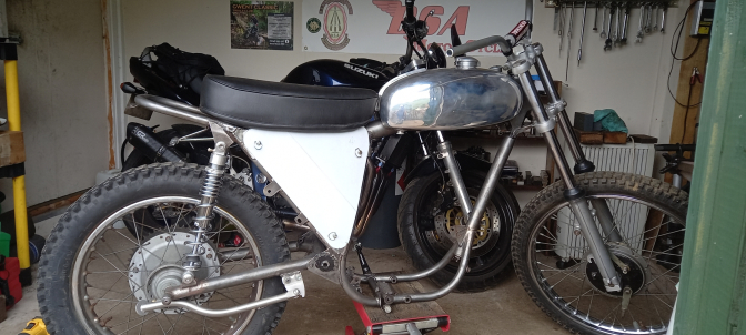 Sorry Charlie, fell asleep. Great getting old.. I moved the side stand from the lug on the left side frame to the right side swingarm. Don't normally fit side stands (I find them a nuisance on the trials bikes) but are a necessity on a trail bike.
