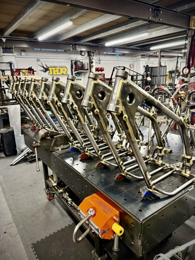 Production frames will be made out of T45 aircraft quality tubing and bronze welded in John’s superb style.
