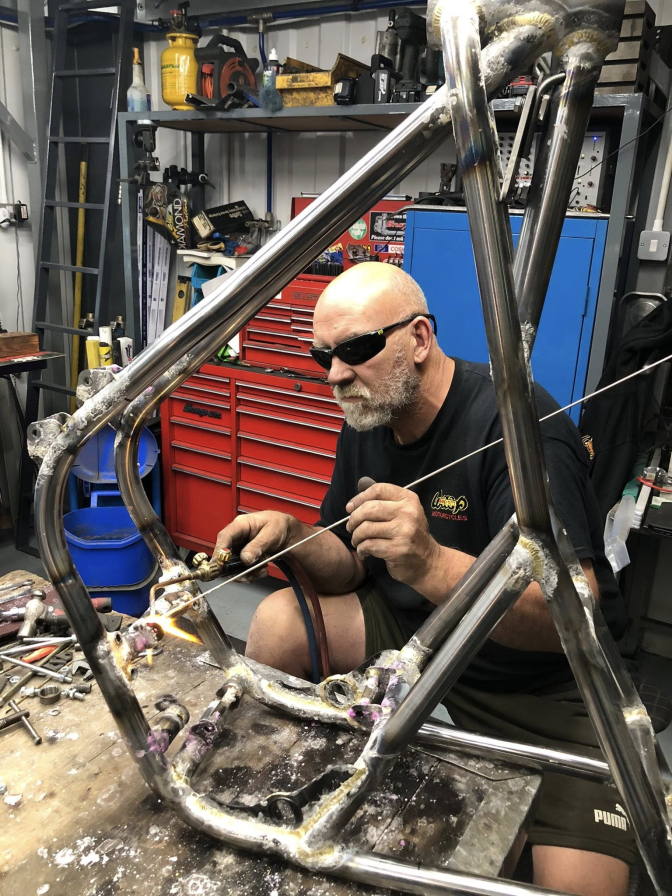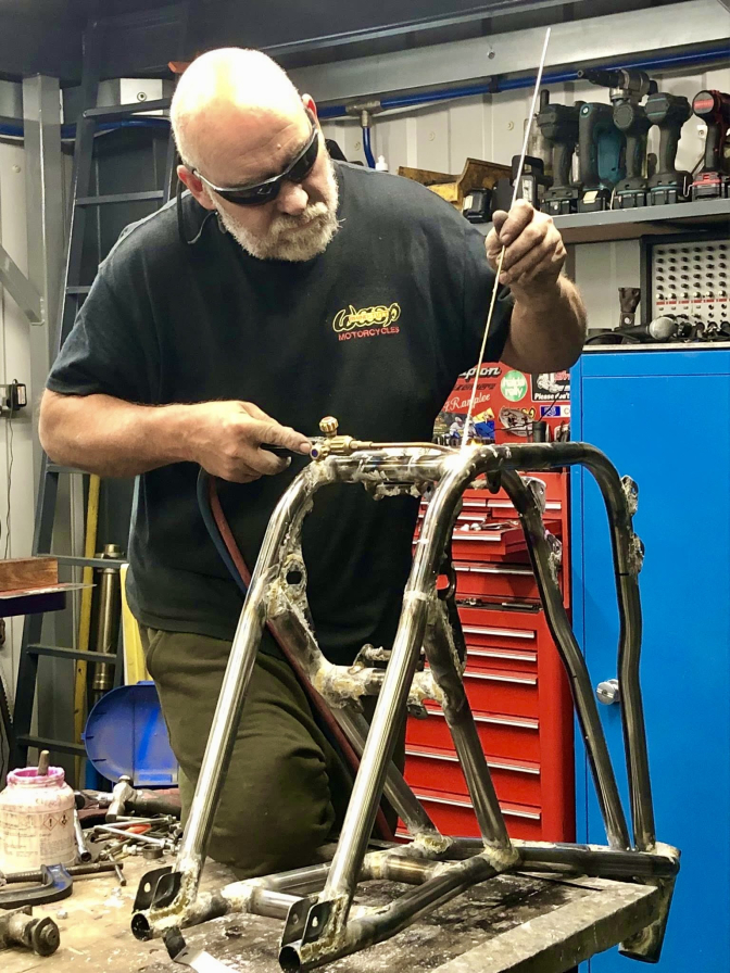 Below an example of the skill shown in building a frame in the Wasp Motorcycles factory today...and the bronze welding skill of young Albert "Robbie" Ross...(Now in 2025 moved on to new pastures)...